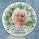 Honor your loved one with a custom photo memorial funeral button. This funeral button features elegant eucalyptus greenery wreath, with your custom photo.