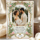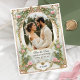 Introduce your friends and family to the first glimpses of your special day with this elegant and unique save-the-date card invitation. This design was specifically created to showcase a treasured photo of you and your lifetime partner while featuring gold vintage detailing along with pink florals and lush eucalyptus greenery. It is perfect for any romantic, garden, vintage, and timeless wedding themes as it offers a vintage yet modern aesthetic that will beautifully complement your special moment.
