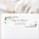 This elegant return address label with its watercolor eucalyptus leaves forms part of a co-ordinating wedding suite.