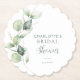 Trendy and modern botanical themed bridal shower paper coaster featuring greenery eucalyptus on white background. Easily change the details by clicking the "Personalize" button.