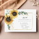 Create a modern Sunflower Floral rsvp card with this cute template featuring beautiful rustic floral bouquet, geometric gold effect frame, with modern simple typography.
