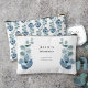 Personalized cosmetics bag for you to customize with name of your bridesmaid - or anyone in your bridal party. You can also add the bride and groom's names and the wedding date. This delicate design has a sprig of eucalyptus leaves on a watercolor wash with watercolor greenery and foliage in shades of dusty blue grey and green. A natural, rustic non-floral design with elegant modern classic typography. Please message me if you need a template create for alternative versions.