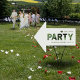 A subtle arrow is incorporated alongside the words "this way," clearly guiding your guests to where the main festivities are taking place. You can further personalize this sign with the couple's names & wedding date displayed in an elegant typography, adding a special and welcoming touch.