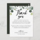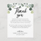 This greenery eucalyptus thank you reception card is perfect for an elegant wedding. Place these cards at the table setting for each of your guests at your wedding reception. Personalize the card with your names and a special thank you message.