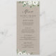 Modern chic watercolor white floral eucalyptus greenery and gold color border frame on kraft paper background, with trendy menu script, elegant and stylish, great wedding menus for rustic wedding, botanical wedding and beach wedding all year round.