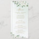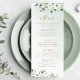 Modern chic watercolor white floral eucalyptus greenery with gold color text on dusty green background, with trendy menu script, elegant and stylish, great wedding menus for rustic wedding, botanical wedding and beach wedding in spring and summer.