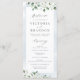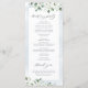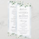 Modern chic watercolor white floral eucalyptus greenery and gold color border frame on dusty blue background, with trendy script, elegant and stylish, great wedding programs for rustic wedding, botanical wedding and beach wedding.
