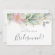 Beautiful bridesmaid proposal cards featuring blush pink floral watercolor eucalyptus and gold leaves.