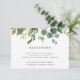 Designed to coordinate with our Eucalyptus Grove wedding collection, this lush botanical reception card features a spray of watercolor leaves and green eucalyptus foliage, topping your reception details, timing and address.