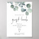 Eucalyptus Sign our Guest Book Printable Wedding Sign. Watercolor eucalyptus leaves flow across the top of this modern design which you can easily personalise and change color via the edit further option if you so wish. Available printed or as a printable digital download.