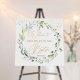 Baby Baptism/Christening Foam Board. This design features an illustration of greenery foliage and eucalyptus leaves in watercolor style. Above the leaves - confetti adorns the top of the foam board (their images can be removed). On the top of the wreath there is an image of a Cross.