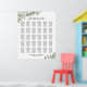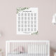 This beautiful 30 table wedding seating chart features a rustic yet elegant boho chic design with hand painted sprigs of watercolor eucalyptus leaves, foliage & greenery in shades of sage green. The script calligraphy title reads "please find your table" and there is space for the names of the couple and wedding date. The chart has table assignments for 300 guests at 30 tables (10 seats per table.)
