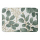 This design features eucalyptus leaves and branches on a white background. The design has a flat, graphic style and a soft green and gold color scheme. The pattern is composed of leaves and branches arranged in a different direction.