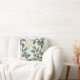 This design features eucalyptus leaves and branches on a white background. The design has a flat, graphic style and a soft green and gold color scheme. The pattern is composed of leaves and branches arranged in a different direction.