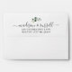 Elegant eucalyptus leaves greenery with classic and script return address wedding invitation envelopes.