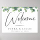Painted silver dollar eucalyptus leaves personalized wedding welcome poster. Personalize text, font style, color and size.