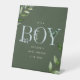 Eucalyptus Lettering Blue Boy Baby Shower Welcome Pedestal Sign