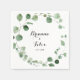 These eucalyptus modern calligraphy wedding paper napkins are perfect for a simple wedding reception. The design features watercolor hand-drawn elegant botanical eucalyptus branches and leaves. Make these napkins your own by including the names of the bride and groom and wedding date. These napkins can compliment a wedding reception, rehearsal dinner, engagement party and more!