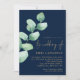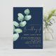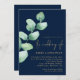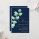 Eucalyptus Navy Blue Gold QR Code Script Wedding Invitation