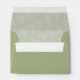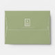 With a color palette from ivory to spring green and dark moss, this wedding collection features a handwritten script font and eucalyptus leaf accents to add that wonderful modern touch. The coordinating envelope shown here has a striking leaf pattern interior in light sage, and a darker spring green exterior topped by your initials and wedding date in a white-trimmed frame. Background colors are all changeable to suit your needs. Search ID901 to see other color choices and coordinating pieces for this unique wedding collection.