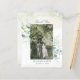 Elegant botanical themed budget wedding thank you card featuring your favorite photo framed with eucalyptus leaves and greenery with a hint of blue and speckles of faux gold glitter over a pastel watercolor wash. Above is "Thank You" in script and below are your last name and date. The backside has your personal message. A simple, rustic design that is great for summer wedding.