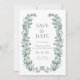 This Eucalyptus Photo Save The Date is a beautiful blend of sage green hues and simple botanical elements, offering an effortless fusion of rustic boho chic and elegant modern aesthetics that showcases unique, hand-painted watercolor botanicals capturing the beauty of eucalyptus. The understated color palette and delicate details form a harmonious design that naturally sets the tone for an unforgettable day. It is perfect for the contemporary bride who appreciates the blend of simplicity, elegance, and a touch of nature.