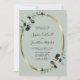 Eucalyptus Sage Gold Metallic Oval Wedding Invitation... Our luxe botanical greenery wedding invitation features a gold metallic oval frame embellished with emerald-hued eucalyptus leaves over a light sage green background. All example text can be easily revised with your own information on the personalization template. Part of a wedding suite with coordinating accessories in the same eucalyptus sage theme.