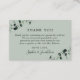Eucalyptus Greenery Elegant Typography Sage Green "Mini" Wedding Thank You Card... Our elegant serif and italic typography "mini" wedding thank you card features sage green and emerald-hued eucalyptus leaves bordering your thank you message and bride and groom signatures on a delicate sage green background. All example text can be easily revised with your own information on the personalization template. PLEASE NOTE: This smaller sized "mini" thank you card does not include envelopes. The design is also available on a traditional thank you card size with envelopes included.