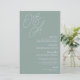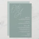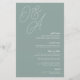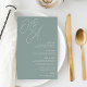 A beautiful typography based wedding menu card featuring your initials in oversized script lettering at the top, in tone on tone shades for a watermark effect. Personalize with your menu items beneath, aligned at the right. Our Eucalyptus colorway is an elegant mix of dusty greens, featuring pale green and white lettering on a sage green background.
