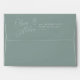 Designed to match our Script Watermark wedding invitations, this elegant color coordinated envelope features your names and return address on the back flap. Our Eucalyptus colorway is an elegant mix of dusty greens, featuring pale green and white lettering on a sage green background.
