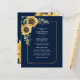 Budget Eucalyptus Geometric Wedding Sunflower Invitation. Create a modern Sunflower Floral Budget Wedding invitation card with this cute template featuring beautiful rustic floral bouquet, geometric gold effect frame, with modern simple typography.