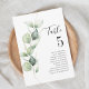 Plan your wedding reception with precision, from save the date, to day of the wedding events like the reception and seating arrangements with these botanical eucalyptus leaves table number seating chart cards.