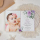 Eucalyptus Violet Flowers Photo Girl Baptism Invitation