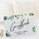 This simple design features a modern handwriting font that was used to create a graphic reading "Guestbook". The edges have been accented with images depicting eucalyptus greenery. Use the template fields to add your personal details. // 151 //