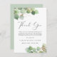An elegant funeral and memorial thank you card. This design features watercolors of sage green eucalyptus greenery with gold accents, "Thank You" in a pretty stylish script and your thank you message and loved one's name in simple modern typography.