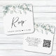 Chic square wedding RSVP enclosure card featuring watercolors of sage eucalyptus greenery and "Rsvp" in an elegant script. On the back, create a scannable QR code linked to your wedding website for your guests to scan to RSVP online and add additional RSVP options if desired.