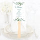 This program fan featuring sage green eucaluptus is a great way to welcome your guests and keep them cool in warm weather. The front side thanks them for coming. The other side shows your ceremony details and your wedding party. All fields are able to be customized to your specifications