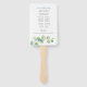 This elegant botanical wedding program fan features my original hand painted painted watercolor eucalyptus leaves. The greenery is done in shades of green tones on a crisp white background. The bride and grooms names and wedding program timeline are set in hand lettered script and sans serif typography. This double sided ceremony program design is a botanical choice for rustic barn weddings, country weddings and garden weddings. Designed by Victoria of VG Invites. To see more, visit www.zazzle.com/vginvites