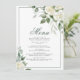 Eucalyptus White Flowers Wedding Menu 5x7