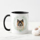 "LOVE MY AKITA DOG" declares this mug for the Akita dog owner. Each side of the mug has a watercolor portrait of a beautiful Akita framed by soft green watercolor eucalyptus leaves. Between the two images is the text, which may be easily customized, or even removed by you, and your monogram or name.