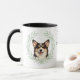"LOVE MY CARDIGAN WELSH CORGI" declares this mug for the proud Corgi dog owner. Each side of the mug has a beautiful portrait of a Cardigan Welsh Corgi Dog framed by soft green watercolor eucalyptus leaves. Between the two images is the text, which may be easily customized, or even removed by you, and your monogram or name.