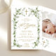 Eucalyptus Wreath Gold Cross Baptism Photo Invitation
