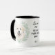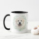 "LOVE MY GREAT PYRENEES DOG" declares this mug for the Great Pyrenees owner. Each side of the mug has a portrait of a beautiful white Great Pyrenees dog framed by soft green watercolor eucalyptus leaves. Between the two images is the text, which may be easily customized, or even removed by you, and your monogram or name.