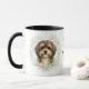 "LOVE MY HAVANESE DOG" declares this mug for the Havanese dog owner. Each side of the mug has a portrait of an adorable little Havanese framed by soft green watercolor eucalyptus leaves. Between the two images is the text, which may be easily customized, or even removed by you, and your monogram or name.