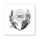 This finely detailed rubber stamp features the sacred symbols of the Most Holy Eucharist: the radiant Host bearing the IHS monogram, flanked by stalks of wheat and a fruitful vine of grapes. Rendered in traditional engraving style, this design is ideal for sacramental packaging, First Holy Communion favors, liturgical journals, or correspondence. A reverent way to mark envelopes, tags, and gifts with the life-giving mystery of the Body and Blood of Christ.