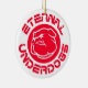 Lightweight, smooth, pure white ornament with nice sheen. Perfect size to be seen from across the room ... and to attract closer inspection! Price was great for ordering enough for the whole family! Clear, bold black design just as requested. Matches the order exactly. Just so nice!