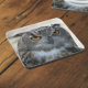 For the owl collector! Protect your table top from water marks and stains from drinks with this set of 6, plastic beverage coasters featuring a photo image of a horned Eurasian Eagle Owl with orange eyes.