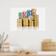 euro coins piled up and rolled bills, five, ten, twenty and fifty euro isolated on white background