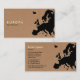 A business card with a map of Europe. Company details on the front with name and contact details on the back with the same European map motif.