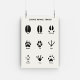 A wall art poster with collection of Animal Tracks in Europe for kids or teacher with deer, roe deer, wild boar, badger, fox, duck, squirrel, frog and marten tracks. Just change text to your own language!
